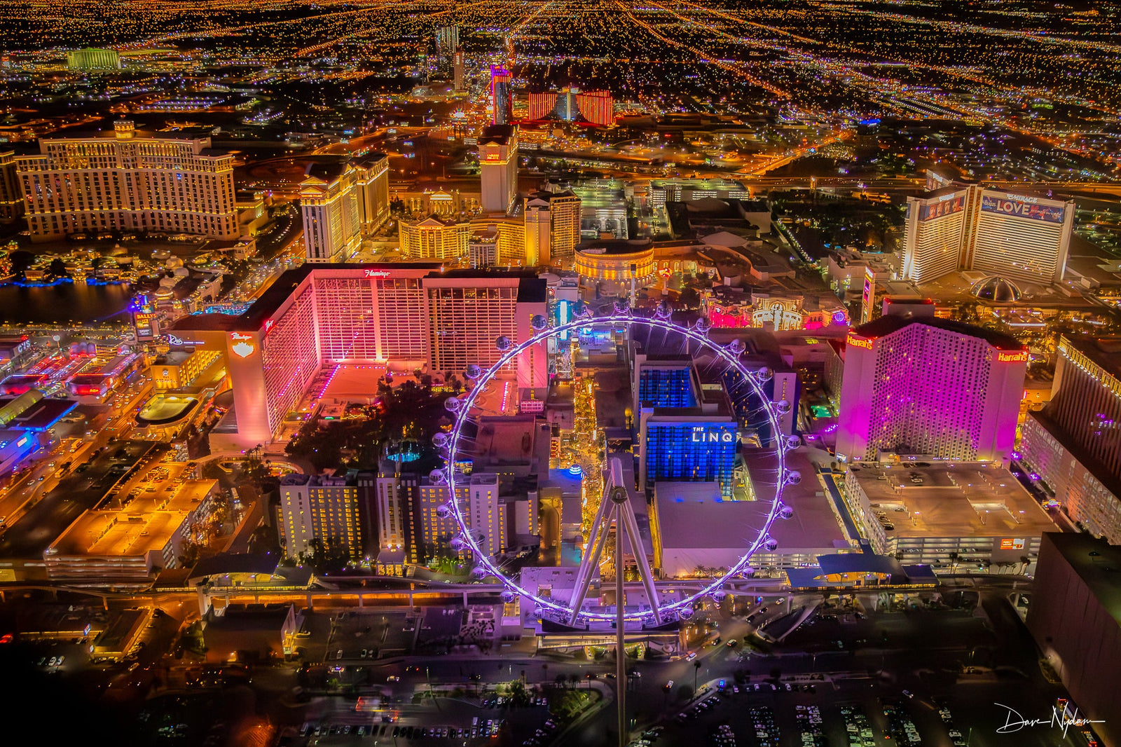 Las Vegas aerial images at night.
